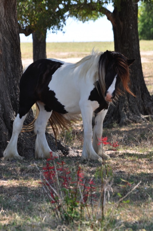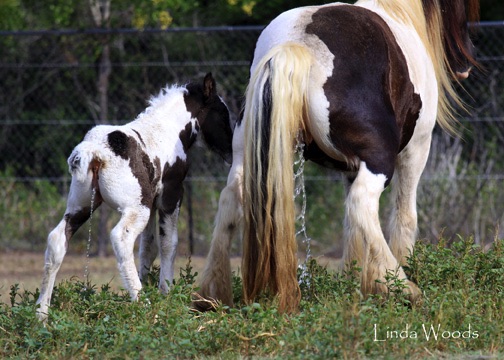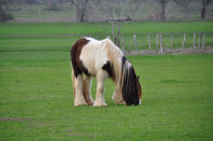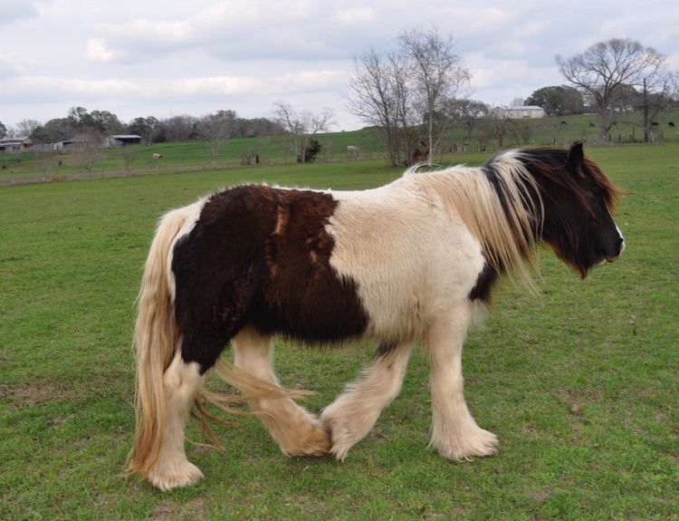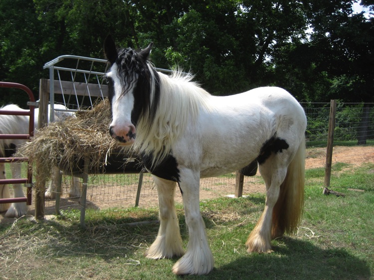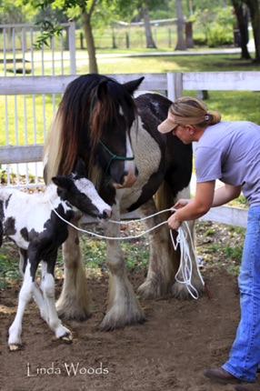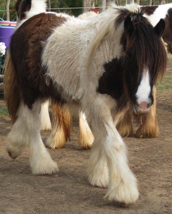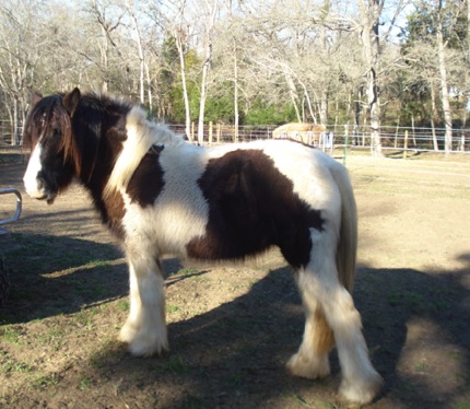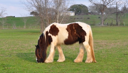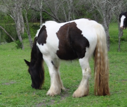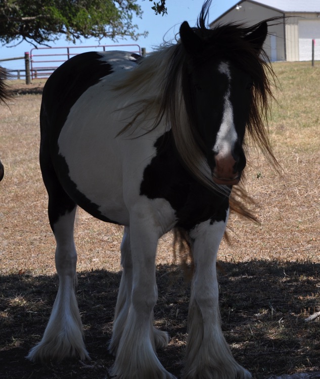 When we spotted Promise on “Coates Gypsy Horses’” website, we knew we wanted her, but had just finished buying 6 horses. We thought that was probably enough. Unfortunately we could not stop going back and looking at her and her mom (Willow). By then, Amy Coates had sent us a lot more pictures. After a little more back and forth, we made it 2 more. She is delightful. She foaled a filly Piper in July of 2011, sired by Darren. She foaled “Primo” a beautiful bay colt, sired by Bandon in May 2013. She foaled another gorgeous heavy colt, "Grayson", sired by Jameson, late May 2014.